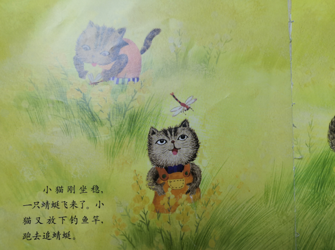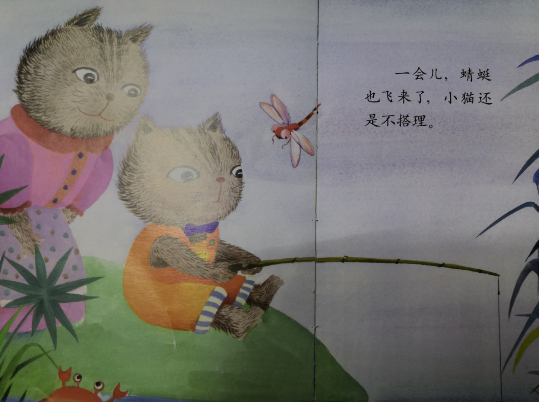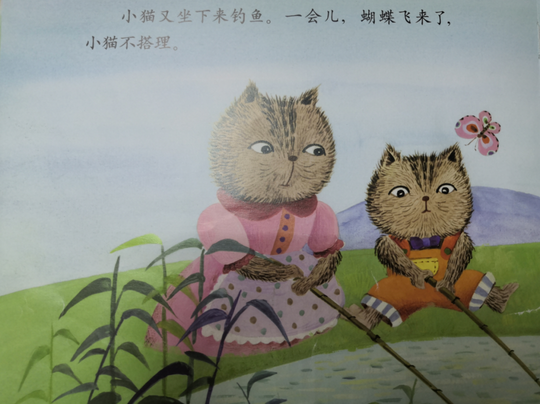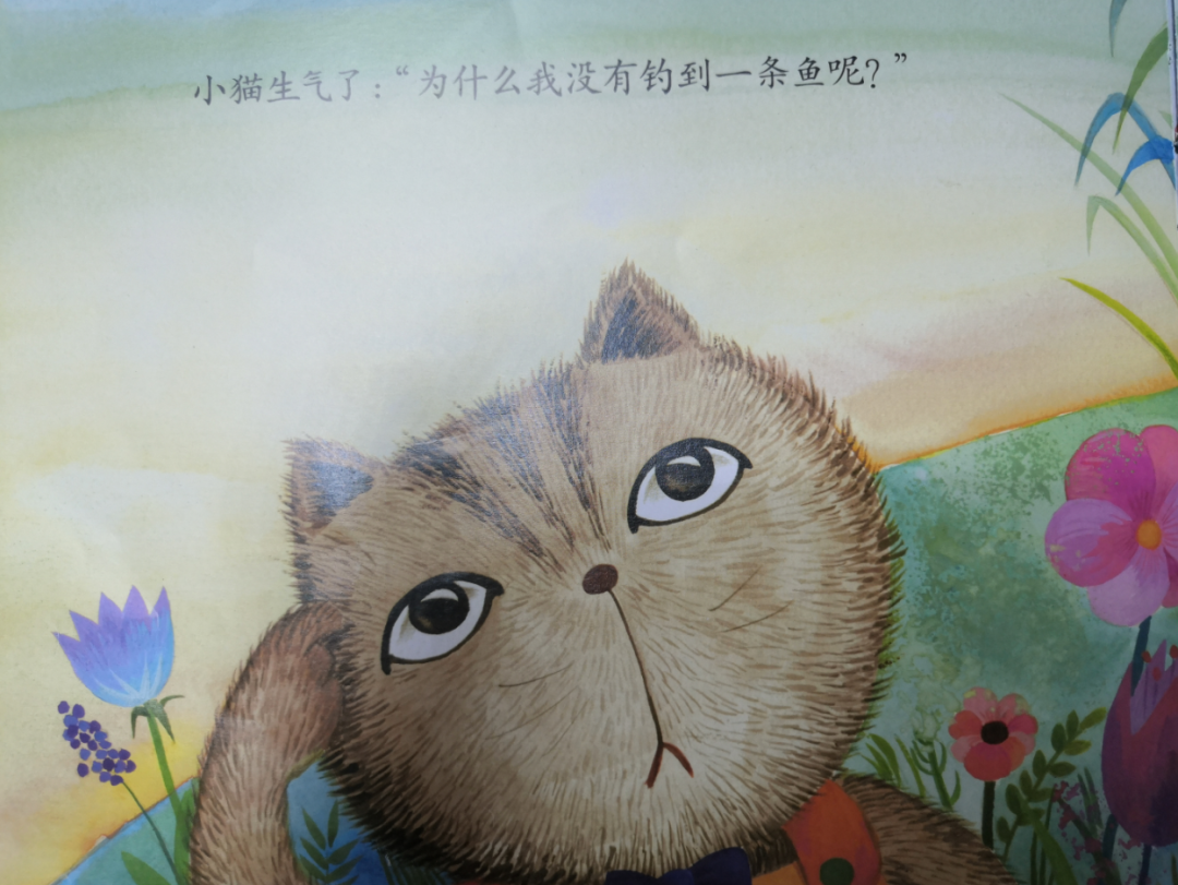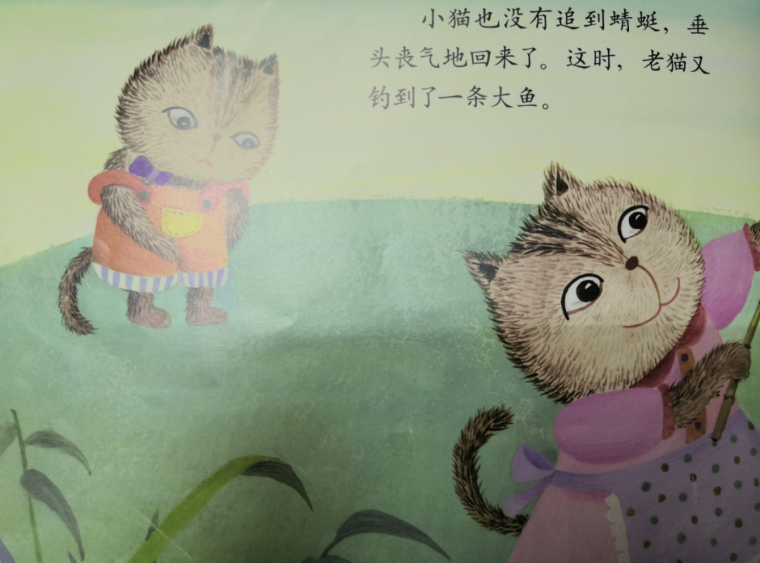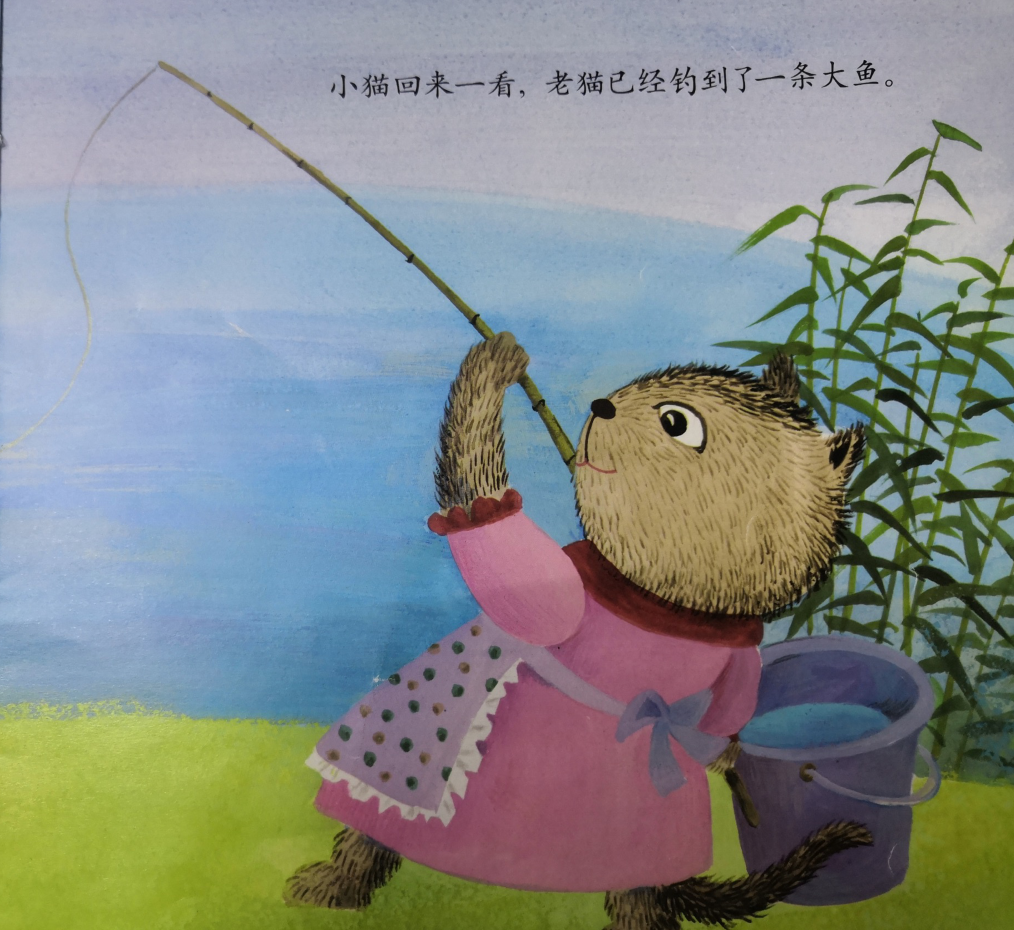1、小猫刚开始为什么没有钓到鱼,后来又怎么钓到鱼了?