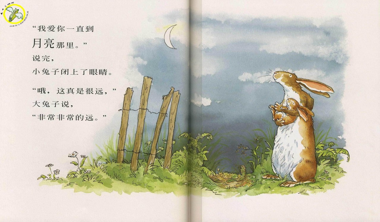 “我爱你一直到月亮那里。”说完,小兔子闭上了眼睛。