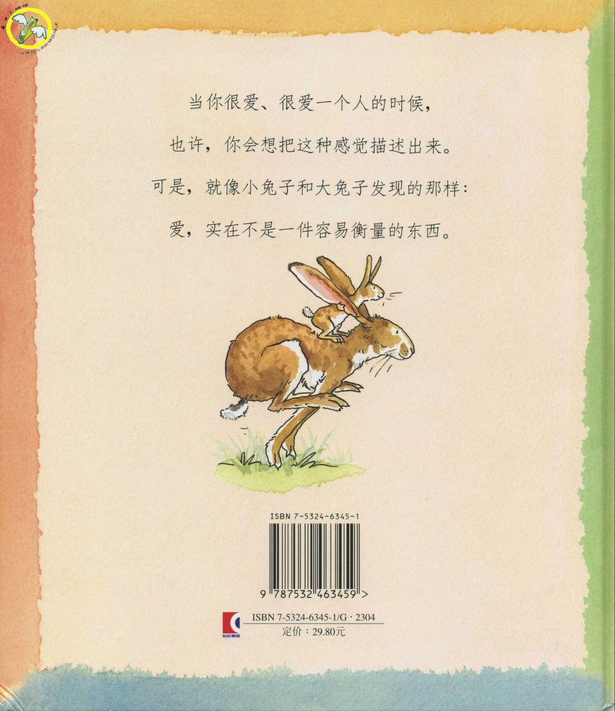 当你很爱、很爱一个人的时候,也许,你会想把这种感觉描述出来。可是,就像小兔子和大兔子发现的那样:爱,实在不是一件容易衡量的东西。