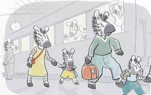 爸爸妈妈带小奔去火车站。在那里见到了一起参加夏令营的小朋友们。