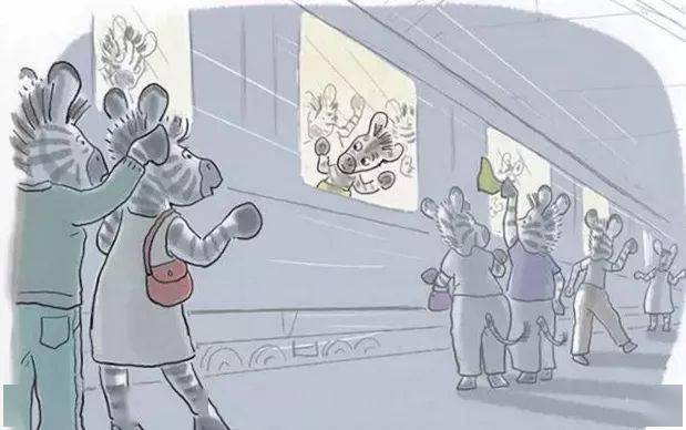 火车一开动,小奔立刻扭头看着爸爸妈妈。