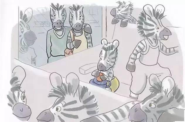 只有小奔的爸爸妈妈看着他。小奔想证明自己长大了,假装不看爸爸妈妈。