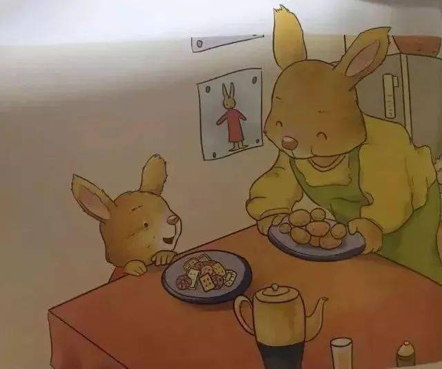 肚子饿得咕咕叫时,妈妈给我做我最爱吃的小甜饼。