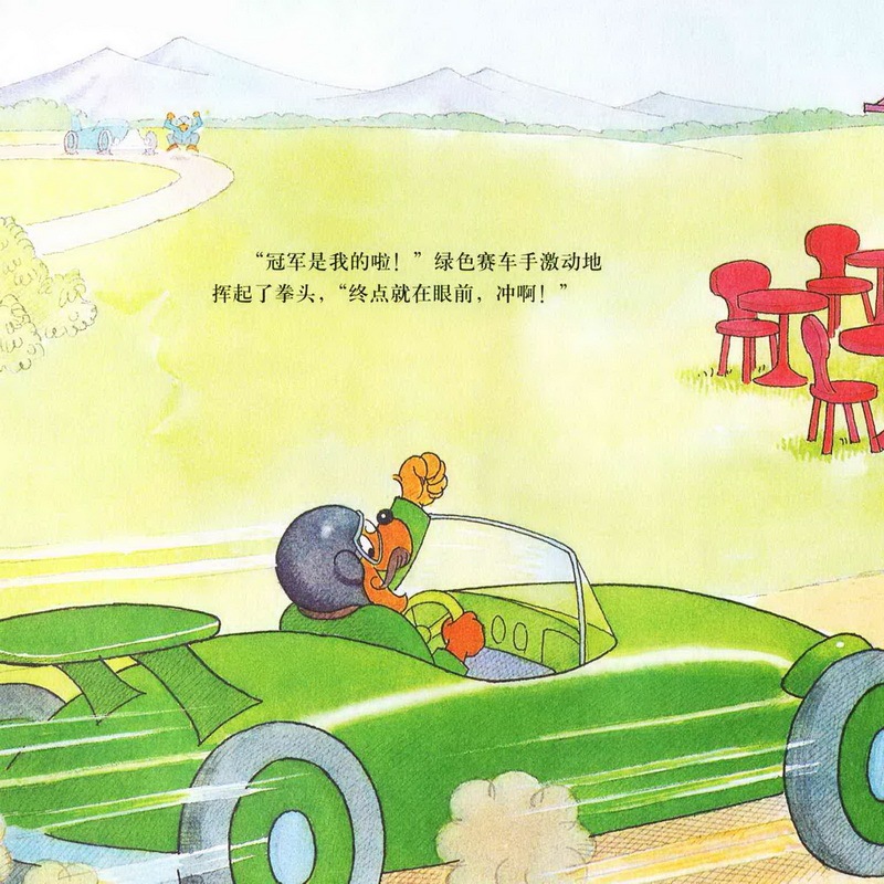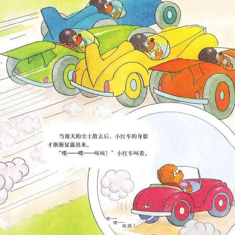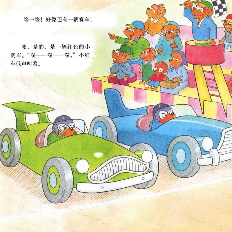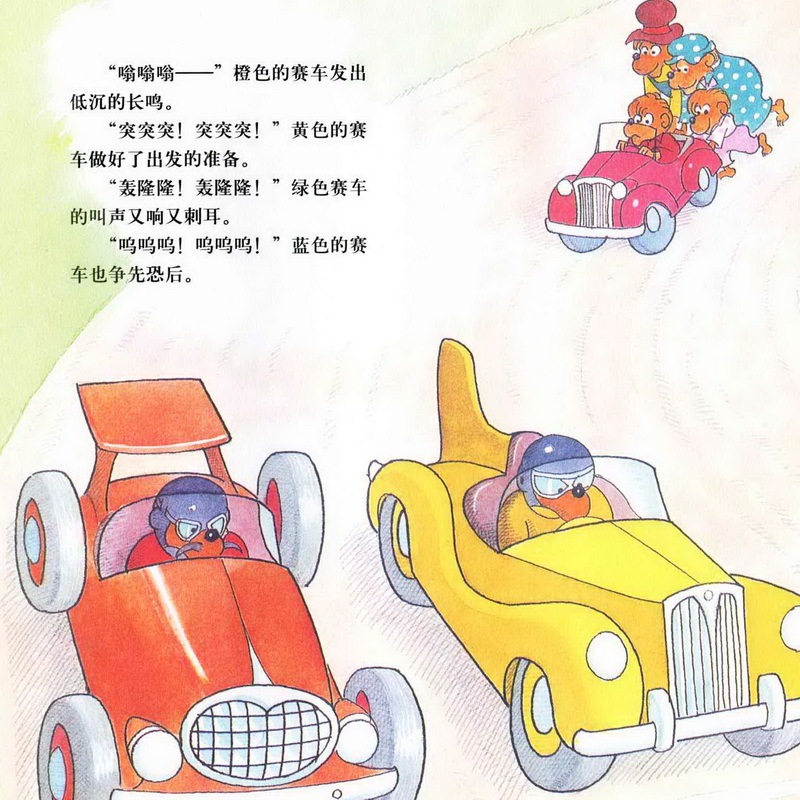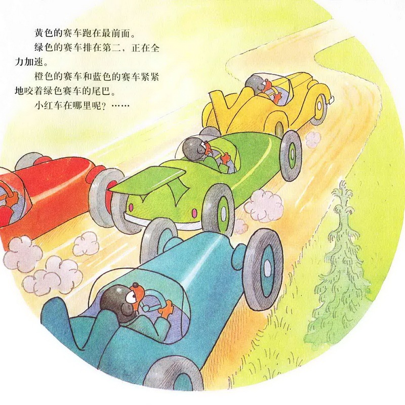 亲爱的小朋友们,今天我们一起讲的故事名字是《赛车冠军》,四辆汽车只有贝贝熊哥哥的小红色汽车跑在了最后,而且他的汽车发出的声音还是噗噗噗噗的,一点力气都好像没有。而其他几辆绿色的,蓝色的,橙色的,黄色的都没有把小红色的汽车放在眼里,最后,赛车的结果是什么呢?