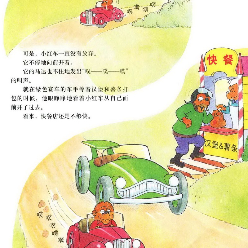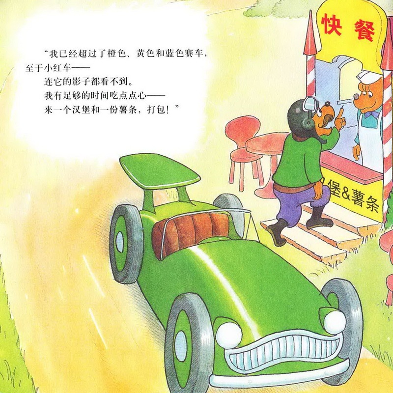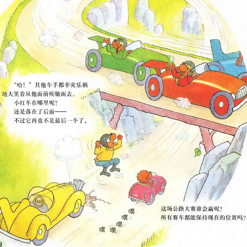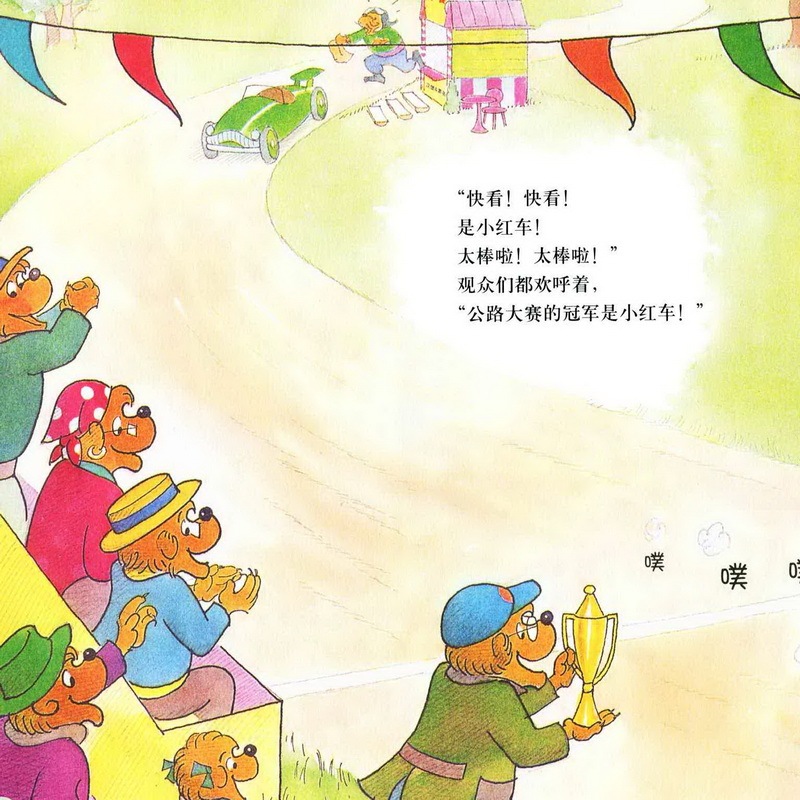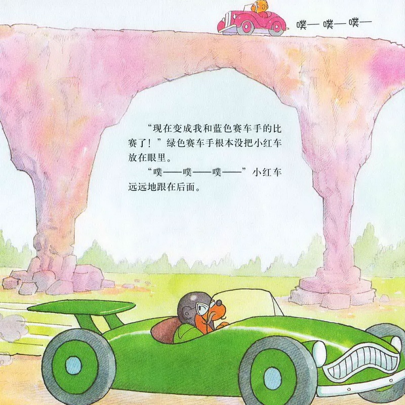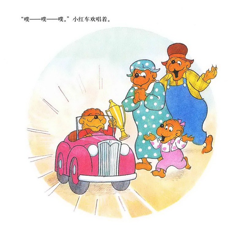 亲爱的小朋友们,今天我们一起讲的故事名字是《赛车冠军》,四辆汽车只有贝贝熊哥哥的小红色汽车跑在了最后,而且他的汽车发出的声音还是噗噗噗噗的,一点力气都好像没有。而其他几辆绿色的,蓝色的,橙色的,黄色的都没有把小红色的汽车放在眼里,最后,赛车的结果是什么呢?