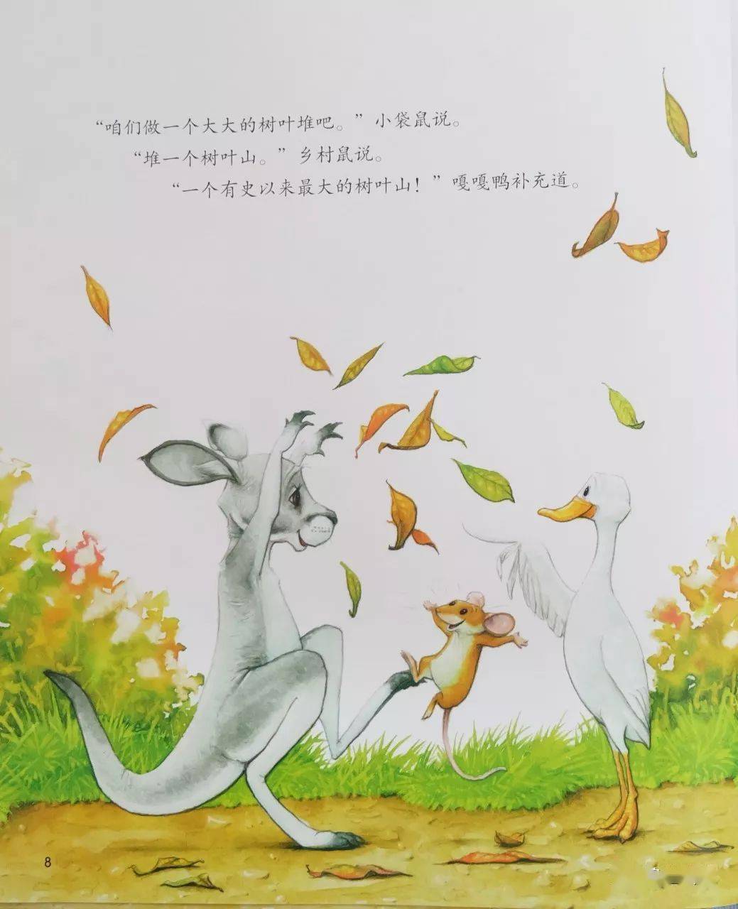 “咱们做一个大大的树叶堆吧。”小袋鼠说。