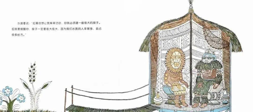 水接着说:“如果你想让我来拜访你,你就必须建一座很大的房子。但我要提醒你,房子一定要很大很大,因为我们水族的人非常多,会占很多地方。”