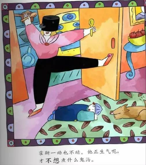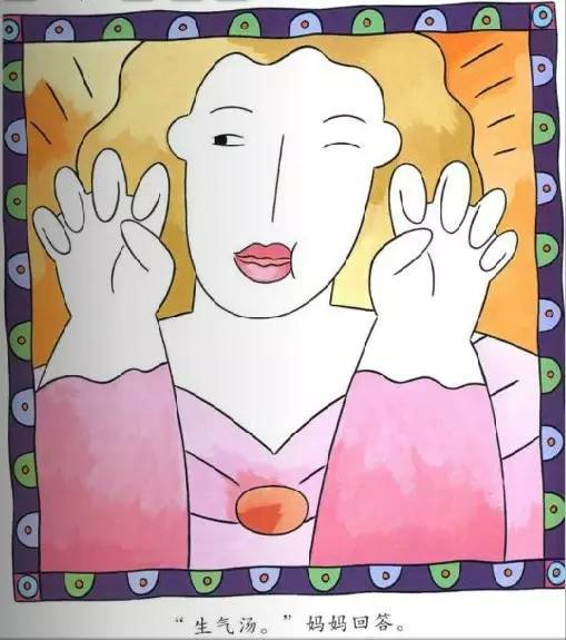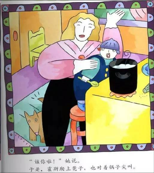 这一天小男孩霍斯过得很不高兴。他带着一肚子怒气回家。但是,他妈妈却说要煮汤。当水滚开时,妈妈对着锅子大叫,她要小男孩也照样做。他们还一起对着锅子龇牙咧嘴、吐舌头、大声敲打锅子。最后,小男孩笑了,心里也快活多了。有时候,孩子难免处在负面的情绪当中,成人应该试着了解和接纳孩子的情绪,同时帮助孩子找到合宜的抒解管道。这是与孩子共读此书时,值得细细咀嚼的滋味。