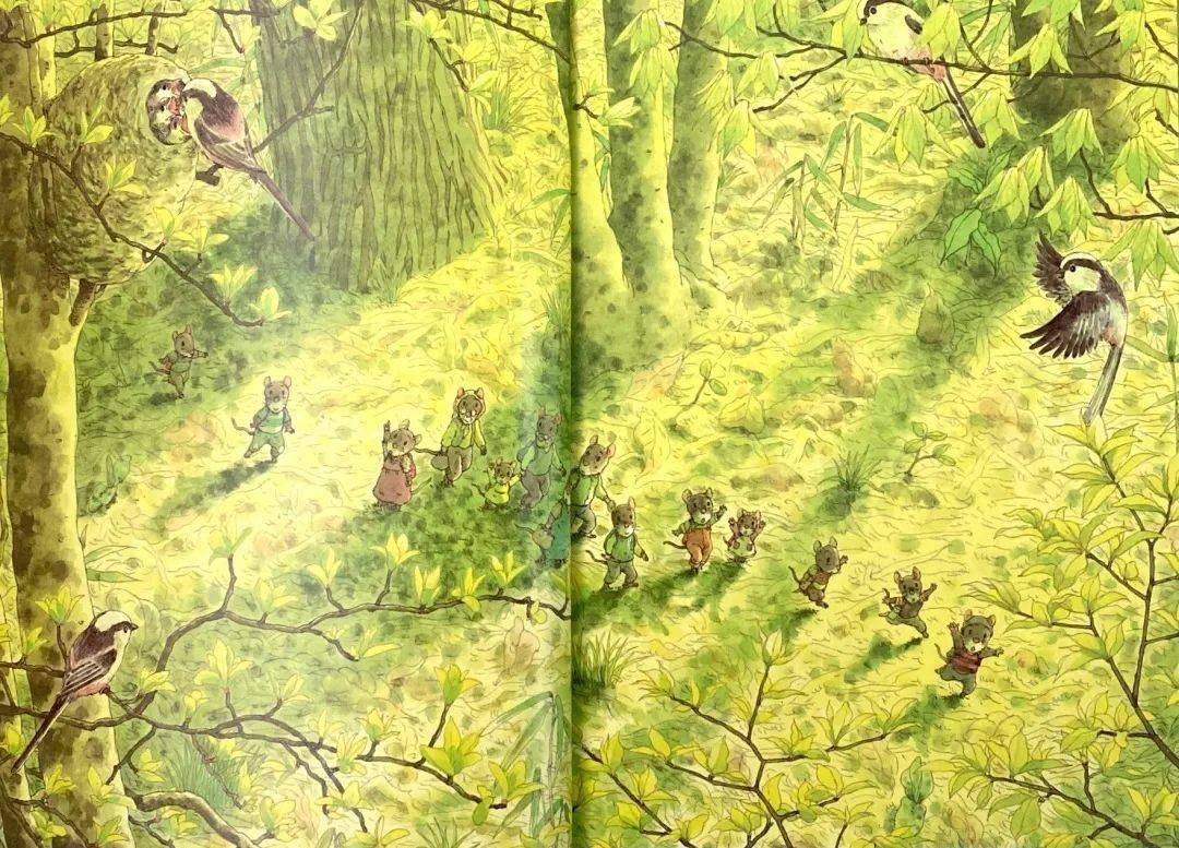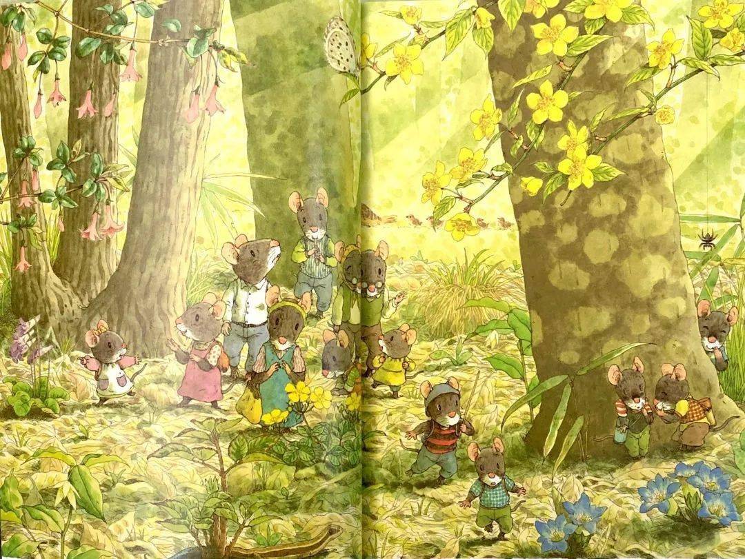 “看啊!”老九发现了紫罗兰花。还有棣棠花,百合花,笔龙胆,森林里百花盛开。