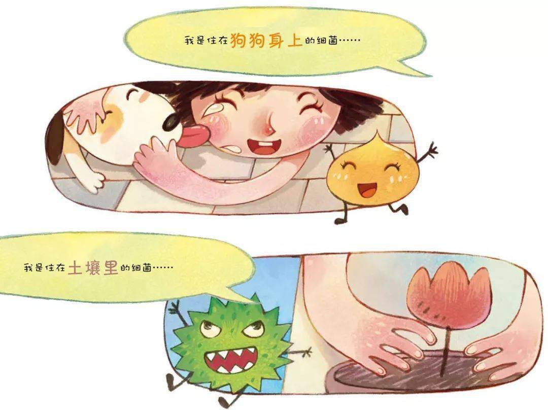 “我是住在门把手上的细菌!” “我是住在窗户上的!” “我是住在书桌上的!” 肚子里的细菌争先恐后地说起来。