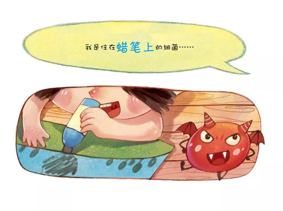 一只红色的细菌尖声尖气地说:“我是住在蜡笔上的细菌!”