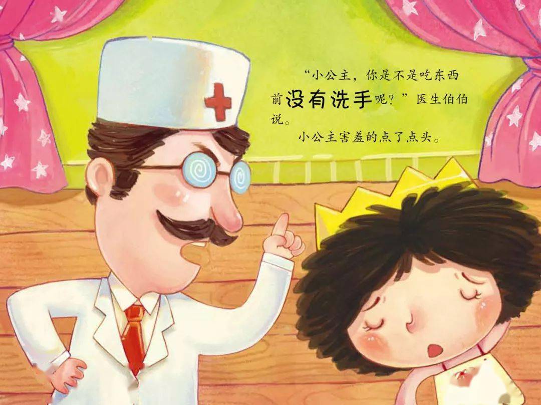 在小公主身上发生了什么事情?皇后、园丁、守卫、厨娘都是怎样提醒小公主洗手的?小公主不洗手,会有什么后果?医生让小公主看到了什么?细菌都住在哪里?医生送给了小公主什么礼物赶走了细菌?哪些情况下,我们要洗手呢?