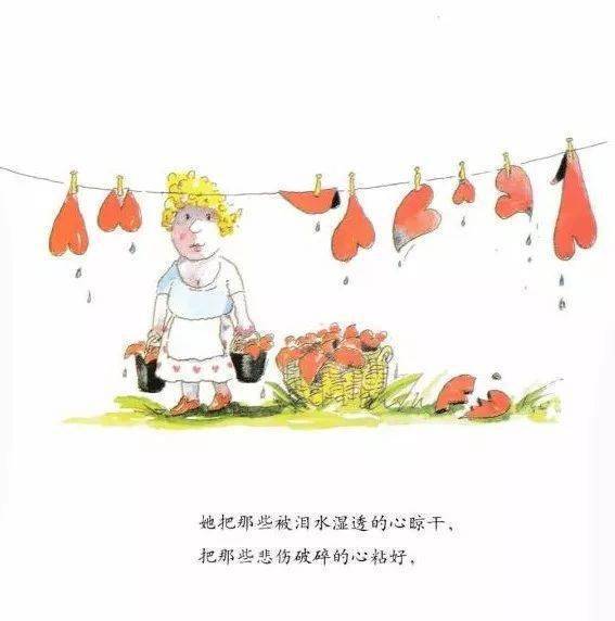 她把那些被泪水湿透的心晾干,把那些悲伤破碎的心粘好。