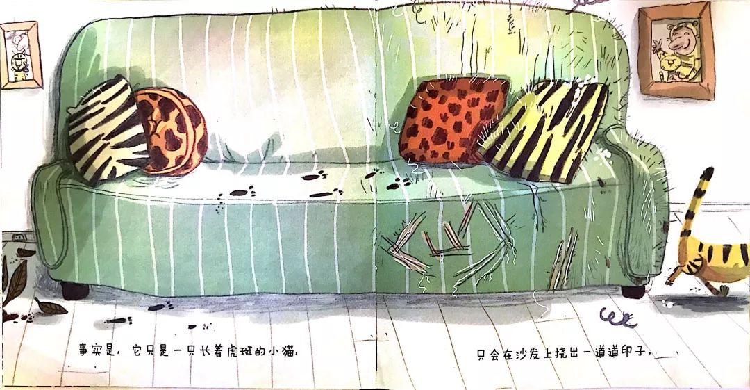 而老虎呢,它啊,它学会了像猫咪一样赖在沙发上打呼噜……