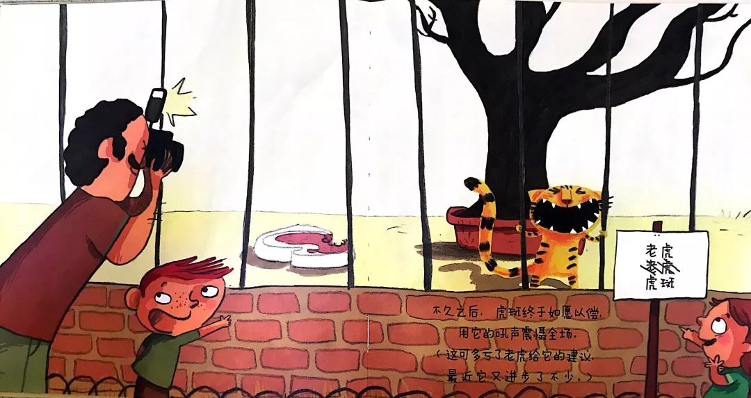 不久之后,虎斑终于如愿以偿,用它的吼声震慑全场(这可多亏了老虎给它的建议,最近它又进步了不少)