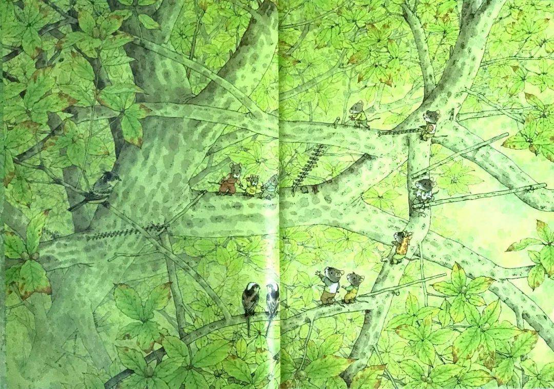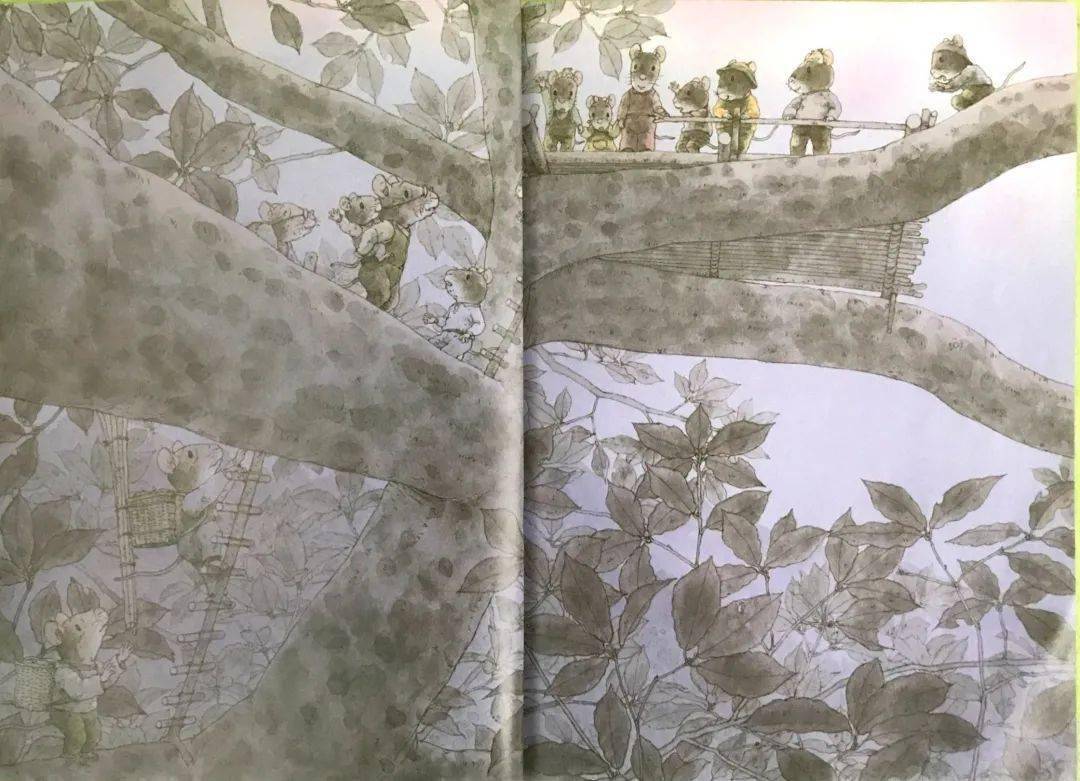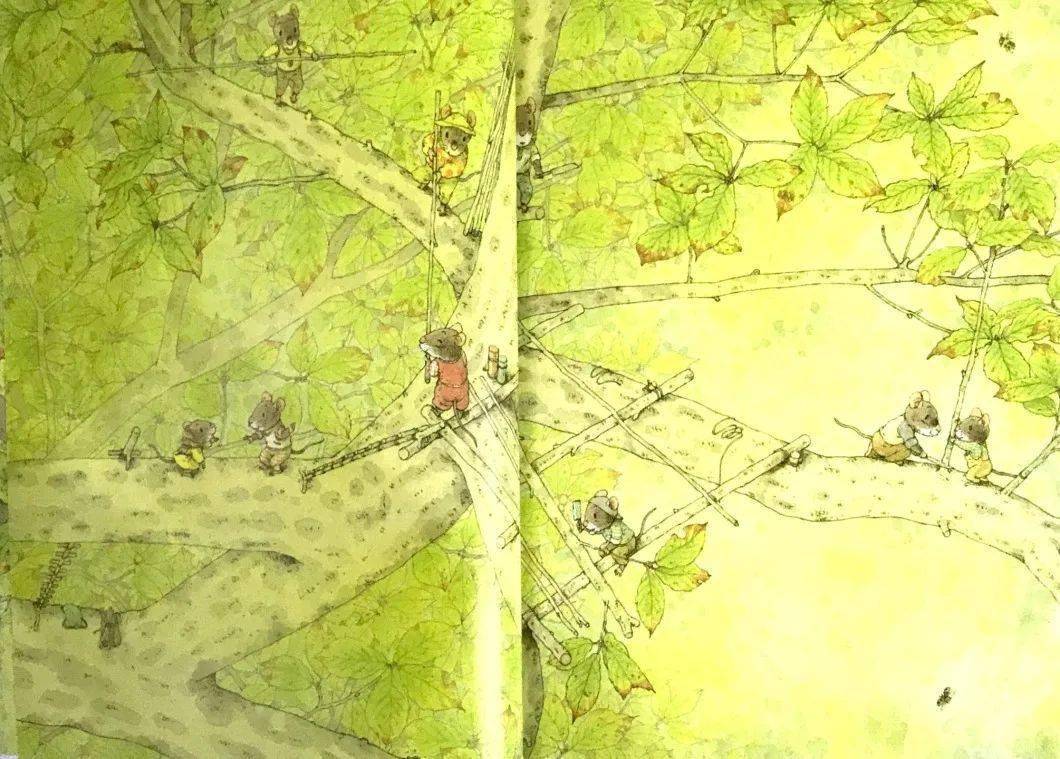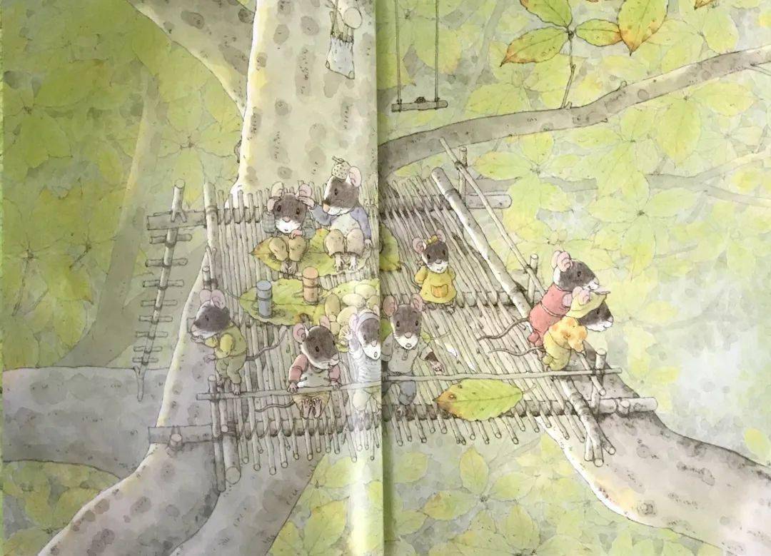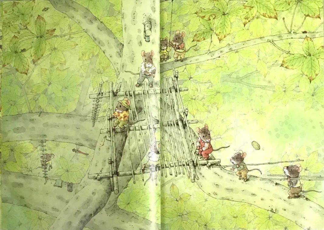 月光,照亮了森林,照亮了远山,照亮了远方地大海,十四只老鼠静静地睡着了。