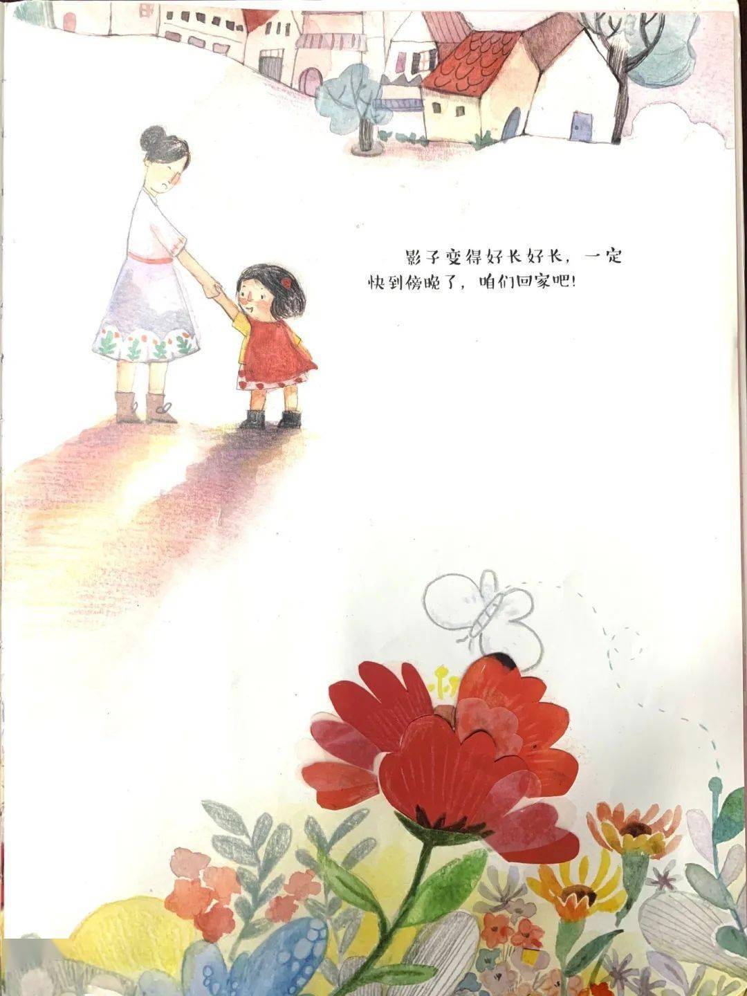 影子变得好长好长,一定快到傍晚了,咱们回家吧!