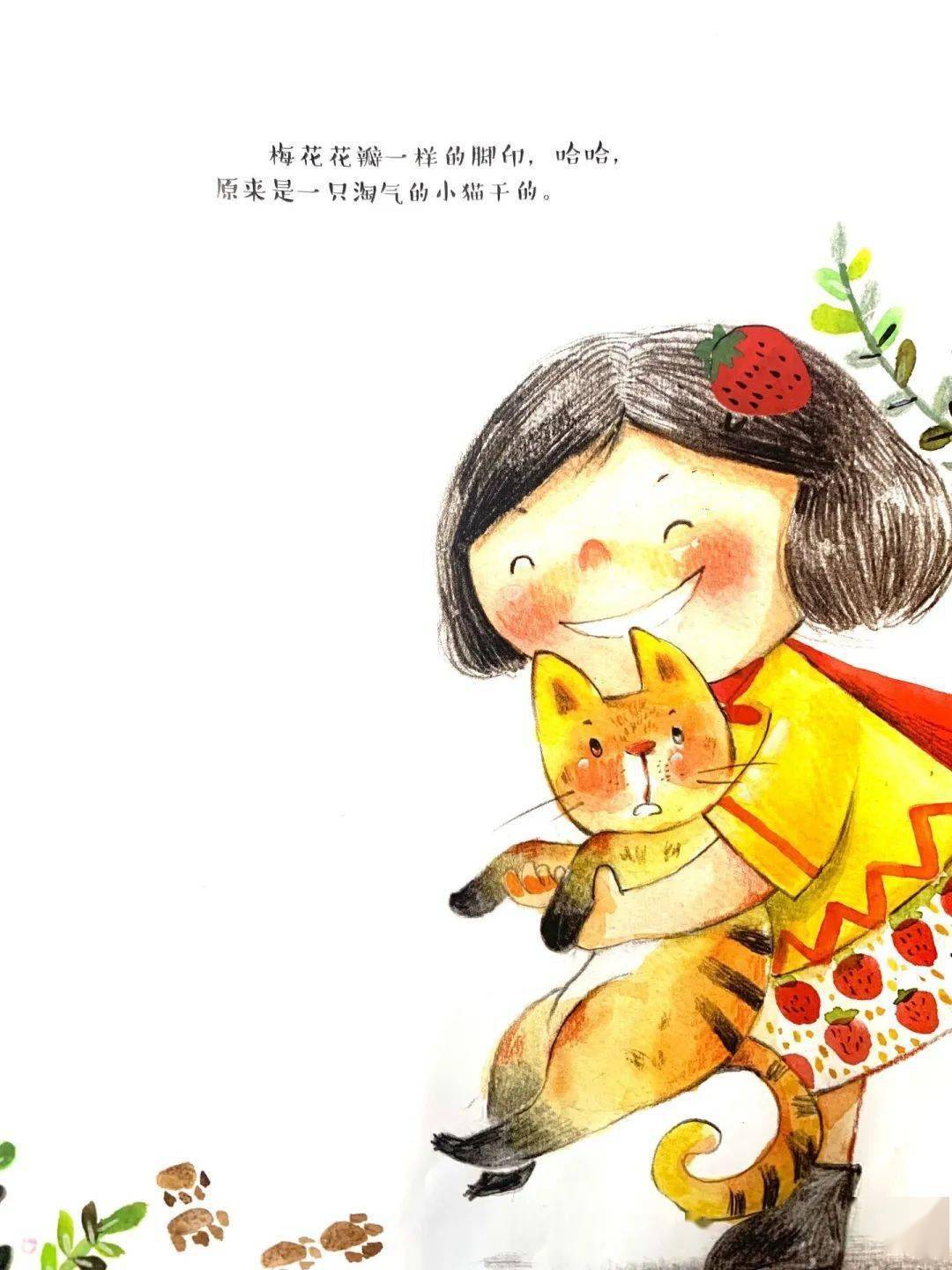 梅花花瓣一样的脚印,哈哈,原来是一只淘气的小猫干的。