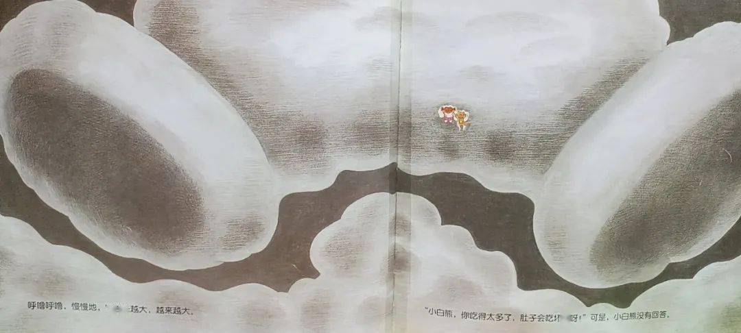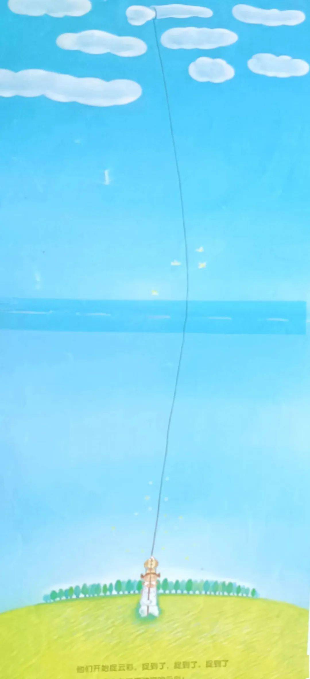 他们开始捉云彩。捉到了,捉到了,捉到了好多好多小白熊喜欢吃的云彩!