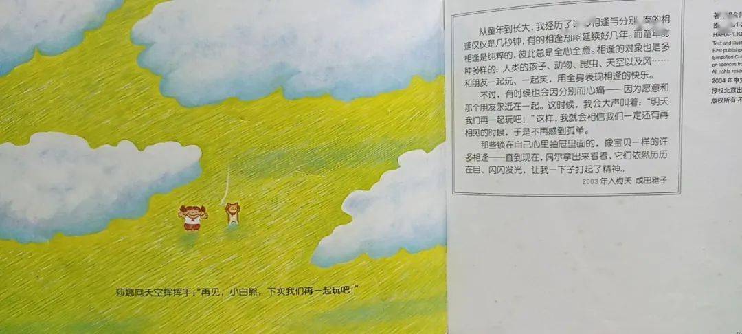 莎娜向天空挥挥手:“再见,小白熊,下次我们再一起玩吧!”