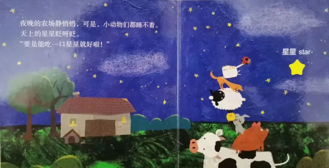 漫长的夜晚静悄悄,农场里的小动物们都睡不着,大家望着天上闪闪发光的星星,都在猜想星星是什么味道的,都发出了一声感叹:“要是能吃一口星星就好啦!”他们到底能不能够吃到星星?最后的结局又是怎样的呢?
