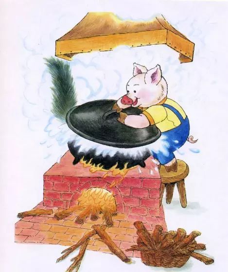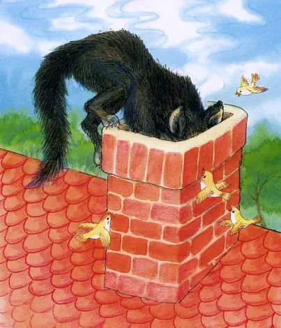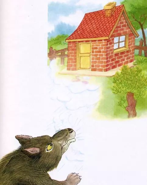 大灰狼气得咬牙切齿:“今天我就是爬烟囱,也要进你的屋子把你吃掉!”