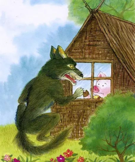 “那我就要吹气儿啦,把你的屋子吹个稀巴烂。”大灰狼说。