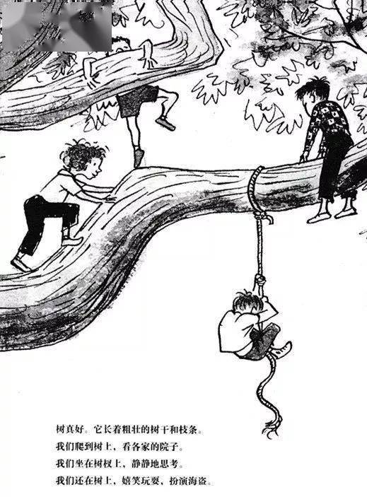 我们还在树上,嬉笑玩耍,扮演海盗。