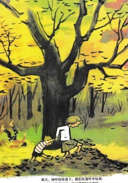 一双小脚蹚着树叶,连滚带爬好不欢畅。