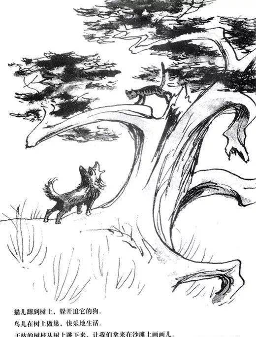 干枯的树枝从树上跳下来,让我们拿来在沙滩上画画儿。