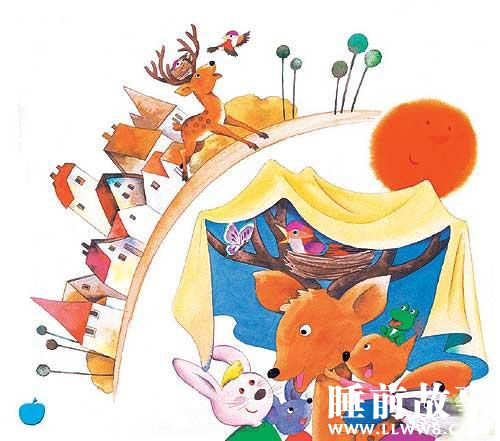 当然啦,小鹿的大角可不只是用来晾东西的!有一次,两只小鸟在小鹿的大角上做了个窝。他们说:“以后,你到哪儿,我们也到哪儿。”