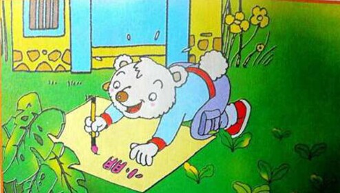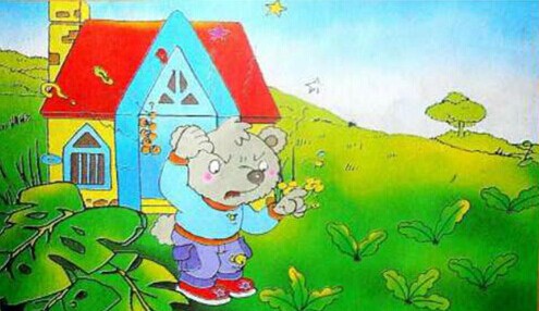 傻小熊拾到一包种子,它把种子撒在了门前的空地上。