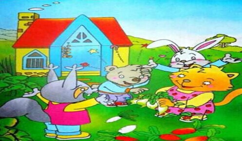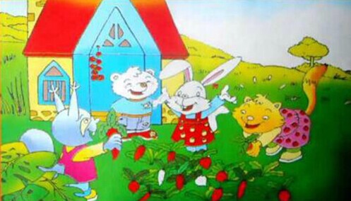 有一天,小狐狸从傻小熊门前经过,他羡慕地说:“傻小熊,你有一个多么大的萝卜园呀,两个月后,你就有吃不完的萝卜啦!”