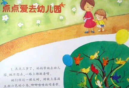 原来这里就是小朋友的幼儿园。点点说:“这里真好。”她放开妈妈的手,高高兴兴地走进去了。