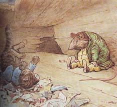 “是的,那些耗子都泛滥成灾了,”塔比瑟泪如雨下地说,“上个星期六,我从厨房后面的一个洞里抓住了七只小的,用他们做了晚餐。还有一次我看见了他们的老爸爸——一只又老又凶的大耗子。瑞比表姐,他竟然对我龇出他的大黄牙,我朝他扑过去的时候,他已经飞快地钻进了洞里。