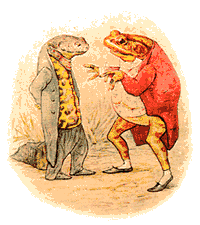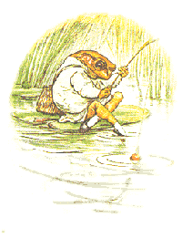 “我要挖点小虫子做鱼饵,去钓几条小鱼当晚饭,”渔夫杰里米先生说,“要是我能钓上五、六条鱼儿,我就请我的朋友乌龟托乐米议员和蝾螈爱沙克先生来吃晚餐,不管怎样,议员也爱吃鲜鱼色拉。”