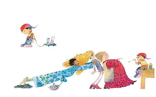 第三种结尾:大恺撒刮完胡子,一个伤口也没出现,眼看小医生要“失业”,爸爸赶紧把家里的“伤员”都找来。奶奶切菜时不小心在手指上留下一个小疤,还得请医生再看看;妈妈耳朵上有个小洞算不算“伤口”呀?当然算!小弗斯科仔细地一个一个给“伤员”看“伤”,然后全贴上了橡皮膏!