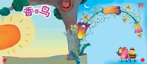 如果有一天,你在花丛里看见一只五彩鸟,他和蜜蜂飞在一起,那就是香香鸟啊!(金波文 唐筠画)
