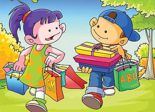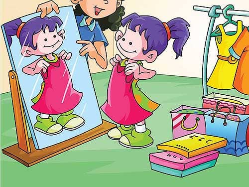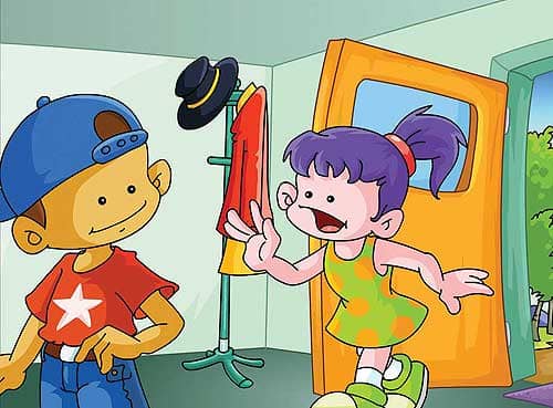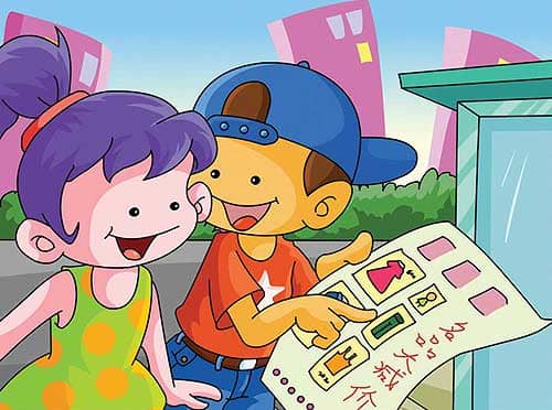1、娃娃拿了一份服装城的广告给丫丫看,丫丫决定去买几套合适的衣服。