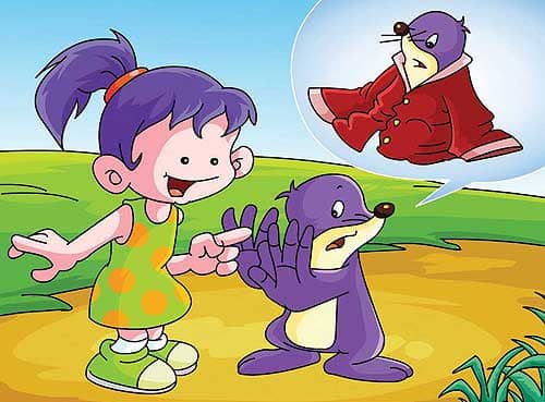 3、丫丫不信,继续往前走,又碰到了从服装城回来的小鼹鼠。