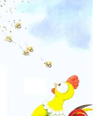 小公鸡抬起头,发现眼前有几只蜜蜂在盘旋。他刚想发脾气,突然觉得鸡冠子一热,然后就是火辣辣的刺痛。