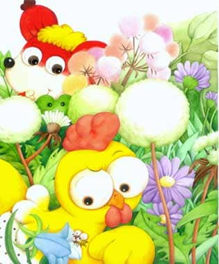 跳跳蛙却在一旁帮小公鸡说话:“这朵小花太可爱,摘走送给鸡妈妈戴。”