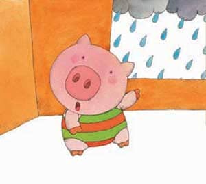 1、“沙沙沙” “沙沙沙”,春雨下个不停。小猪嘟囔道:“已经三天没出去玩了。”(请宝宝模仿下雨的声音,如沙沙沙、滴嗒滴嗒、唏呖呖、哗啦啦等。