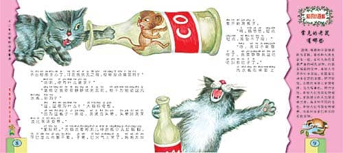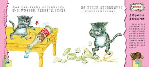 汽水瓶在桌面上“咕噜噜、咕噜噜”地滚来滚去,一不小心就滚下了桌子,“砰”的一声摔了个粉碎。大猫给吓了一跳,可当它醒悟过来,跳到地上时,发现小老鼠聪聪早不见了,地上只有一堆七零八碎的玻璃片。