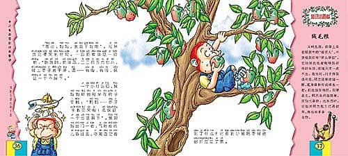一个小时以后,猴妈妈听到阿呆在院子里喊:“妈妈……枣子全收回来啦!我保证一个也没漏下”。猴妈妈出门一看,气得差点儿昏过去,你知道它看到了什么?它看到小猴把枣树砍倒并扛回了家。