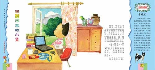 这天,小狗路卡接到好朋友小猫的电话,它要来做客。小猫最爱吃鱼,对,问小熊借根鱼杆钓鱼去。