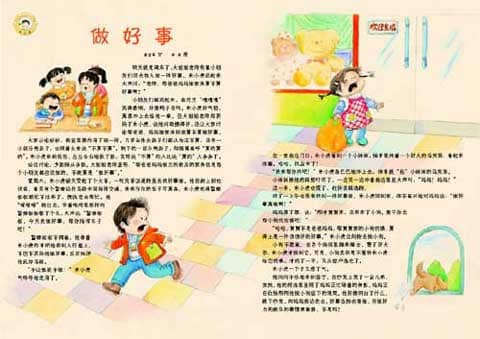 明天就是周末了,大姐姐老师布置小朋友们回去每人做一件好事。米小虎站起来大声问:“老师,帮爸爸妈妈做家务算不算好事啊?”