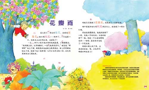 一天,4个小伙伴来到果园里玩捉迷藏。小猴聪聪说:“我到树上去,大家快躲好,一会儿我来找你们。”说完就“蹭蹭蹭”地上了树。聪聪在树上跳来跳去,树上的花瓣纷纷往下落,果园里下起了花瓣雨!几个小伙伴一商量,决定用花瓣来伪装自己。