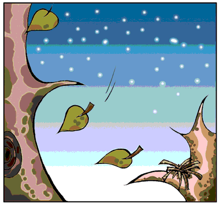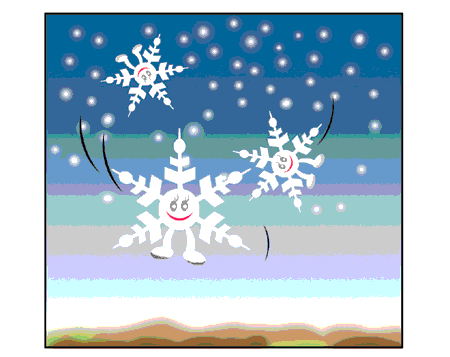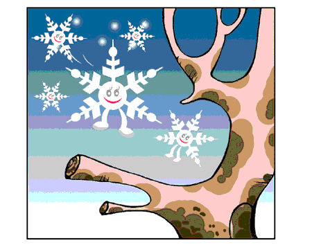 4.雪娃娃跳着优美的舞蹈,落在了树上。