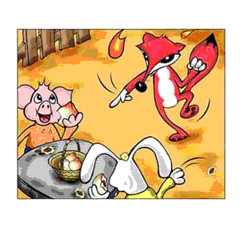 吃掉了半篮桃子时,红狐狸从外面哼着歌儿回来了。他一进院子,就气得哇哇叫:“谁叫你们偷吃我的桃子?”